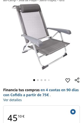 Bo-Camp - Silla de Playa - Saint-Tropez - Gris Marca Bo-Camp Color Gris Material Textileno Dimensiones del producto 61f. x 19an. x 74al. centímetros Peso del producto 3 Kilogramos Estilo de respaldo Respaldo sólido