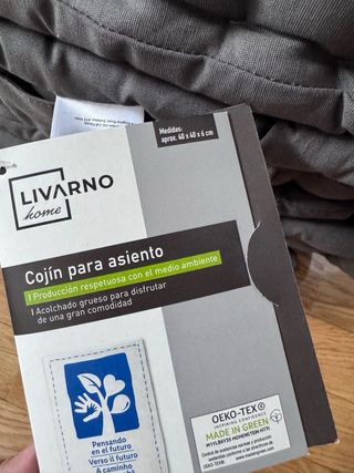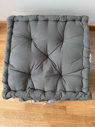 Cojín cuadrado con un diseño acolchado y ribeteado. Comprado en lidl Precio por los cuatro cojines - Acolchado con botones. - Ribete decorativo en todo el borde.