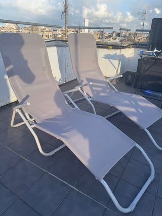 Conjunto de tumbonas plegables, ideales para exteriores. - Diseño robusto y duradero. - Fácil de plegar y almacenar. Precio original: 100€ por tumbona. Se venden a buen precio porque hay que recogerlas en un 4o sin ascensor.