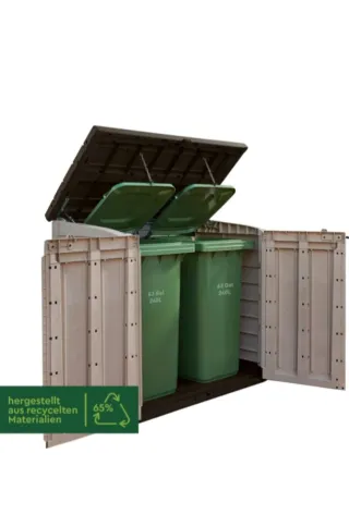 Keter Sio Pro -Cobertizo de jardín Exterior, Capacidad 1200L, Color Beige/Marrón, 145,5 x 82 x 123 cm Marca Keter Color Beige/Marrón Material Plástico Dimensiones del producto 82f. x 145,5an. x 123al. centímetros Peso del producto23,9 Kilogramos EstiloNuevo Store-It-Out Pro Solución de almacenamiento al aire libre ideal para guardar todas las herramientas y el equipo del jardín, así como dos contenedores de 240 litros. Paneles de efecto madera elegantes con una tapa de pistones y puertas de amplia apertura; capacidad de 1200 litros.