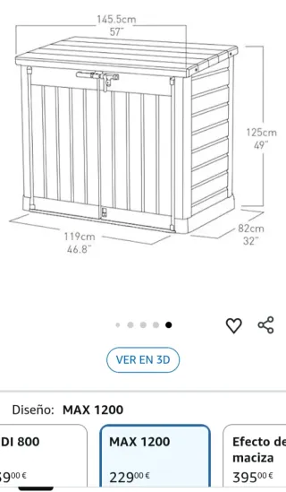 Keter Sio Max -Cobertizo de jardín exterior, Capacidad 1200L, Color Topo/Beige, 145.5 x 125 x 82 cm Marca Keter Color Topo / Beige Material Plástico Dimensiones del producto 82f. x 145,5an. x 125 al. centímetros Peso del producto 66,14 Libras Estilo MAX 1200 Cobertizo de ordenación exterior con doble puerta y tapa plana abatible imitación madera. Capacidad 1200 l