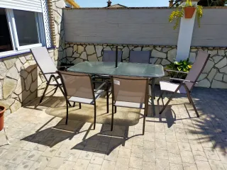 Mesa, sillas y tumbonas de jardín