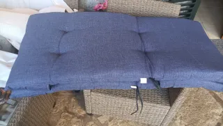 Conjunto de dos bancos de tres plazas cada uno. Son ideales para exteriores. - Tapicería de tela impermeable. - Estructura resistente. 20€ cada banco.