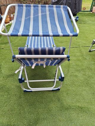 Tumbona plegable con parasol integrado, ideal para disfrutar del exterior. - Estructura metálica. - Tejido de malla transpirable. - está como nueva, la compré a finales del verano. - vendo cosas por mudanza - ver sin compromiso