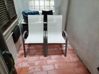 2 Sillas de terraza blancas + 1 sillas roja