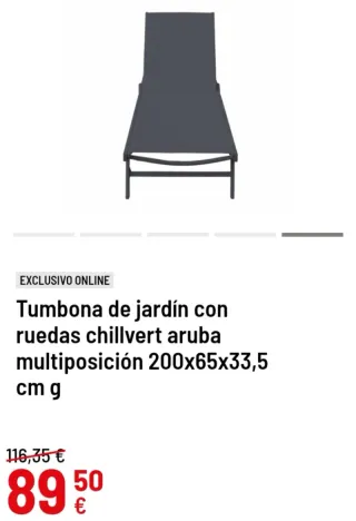 Tumbona de jardín Chillvert Aruba, diseño elegante y resistente en color gris. Estructura robusta de resina plástica, ideal para exterior, resistente a la intemperie y fácil de limpiar. Dispone de ruedas traseras para un transporte cómodo y respaldo multiposición que permite ajustar la inclinación según preferencia. Dimensiones: 200 x 65 x 33,5 cm, altura perfecta para mayor comodidad. Diseño ergonómico para un descanso óptimo al sol, junto a la piscina o en terraza. Modelo KCH430. Ideal para uso en jardines, patios, piscinas y espacios exteriores. Ligera, práctica y muy funcional.