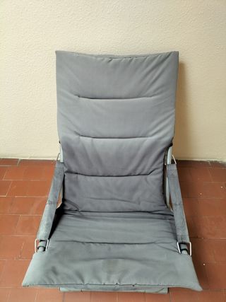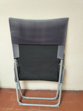 Tumbonas plegables, perfectas para disfrutar del aire libre. Son cómodas y fáciles de guardar. - Estructura metálica. - Asiento y respaldo de tela. Tengo cuatro disponibles. Una de ellas tiene un brazo un poco roto.