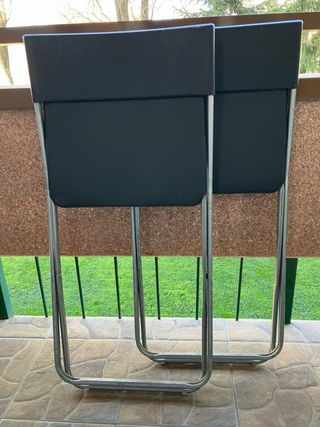 Conjunto de sillas (2) plegables de color negro. 8€ una y 15€ las dos - Estructura de metal. - Asiento y respaldo de plástico.