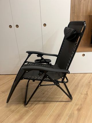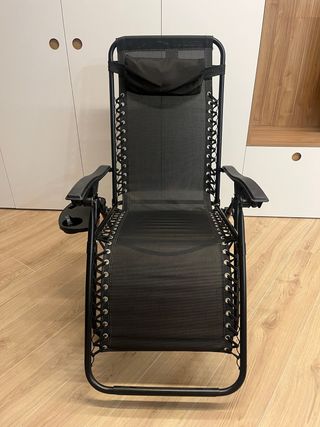 Tumbona Jardin Exterior, Sillon Gravedad Cero, Sillones Plegables, Hamaca, Silla Jardin Exterior, Terraza, Camping, Acero Ligero, Portavasos Incluido. Ideal para relajarse en el jardín o la terraza. Su diseño permite un fácil transporte y almacenamiento. - Estructura metálica resistente. - Tejido de malla transpirable. - Reposacabezas acolchado. - Reposabrazos con portavasos. Usado 6 meses. Solo se ha destensado un poco la goma del reposacabeza (foto 5).