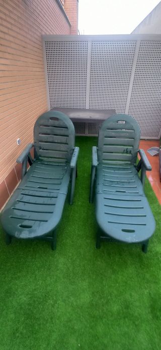 30€ las dos. Conjunto de dos tumbonas plegables, ideales para disfrutar del sol. - Material resistente y duradero. - Fáciles de plegar y almacenar.