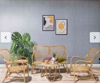 Características: Medidas sofá: 108x72x85 cm. Butacas: 62x74x86 cm. Medidas asiento al suelo butacas: 37 cm. - Medidas mesa auxiliar: 40x40 cm. Mesa centro: 52x45 cm. Material: Ratán Natural. Marrón Peso sofá: 8 kg. Butacas: 4,5 kg. Peso mesa auxiliar: 2 kg. Mesa centro: 2,5 kg. - Uso: Interior y Exterior (aplicando tratamientos específicos).