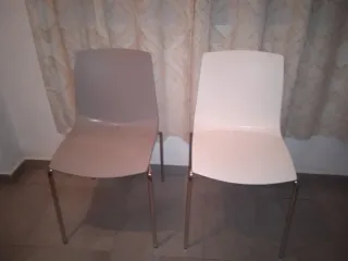 Se venden dos sillas, una blanca y otra gris. Son ideales para relajarse al aire libre. - Diseño moderno y elegante. - Estructura de metal resistente. - Material plástico de alta calidad. - Perfectas para jardín o terraza.