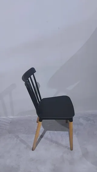 3 Sillas Negras Madera y Pata Metálica