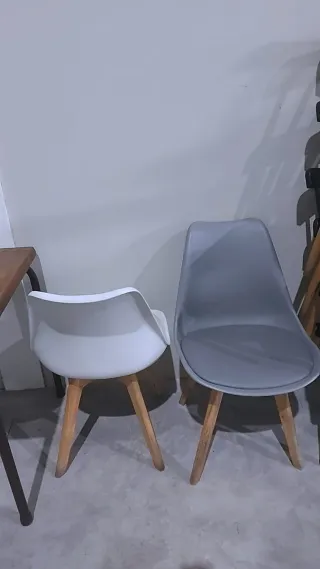 Sillas de exterior 12€/u (sillas 10€ si se llevan 4 y una mesa conjunto 50€) y mesas10€/u muy resistentes, silla terraza bar resistente agua y sol, perfectas para tu terraza o jardín. Su diseño apilable las hace muy prácticas para almacenar. A 12€/u por unidad o lote Precio no negociable - Fabricadas en plástico resistente. - Color gris neutro. - Ideales para uso exterior.