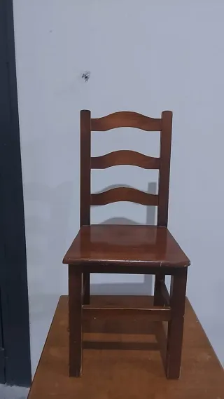 Conjunto de cuatro sillas de madera con un acabado marrón. Sus medidas son 40x40x94 cm. - Diseño clásico y elegante. - Estructura robusta y duradera. Se atiende WhatsApp 665955355
