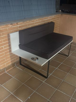 Este sofá de exterior combina un diseño moderno con comodidad. Existen dos iguales. Precio por los dos 340€ - Estructura metálica. - Cojines de tela.