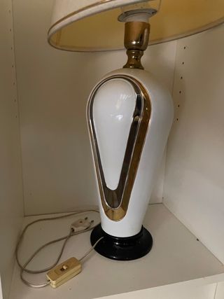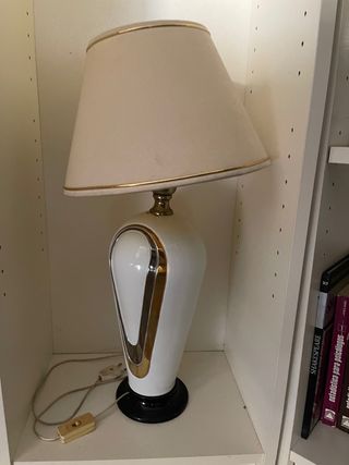 Lámpara de mesa blanca y dorada
