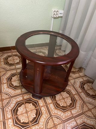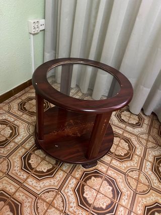 Mesa centro madera y cristal redonda