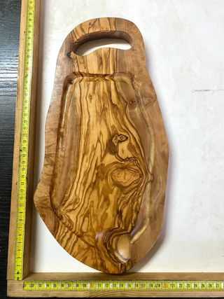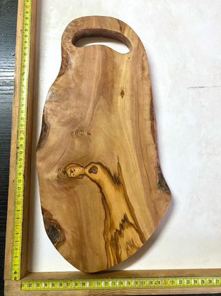 Tabla de cortar con un diseño orgánico y veteado natural de la madera de olivo. Perfecta para presentar y cortar alimentos. - Fabricada en madera de olivo. - Diseño único y artesanal.