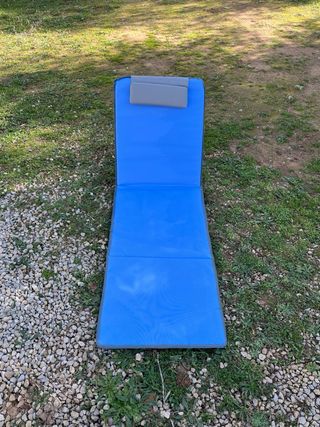 Tumbona plegable para disfrutar del sol y la relajación al aire libre. Su diseño es práctico y fácil de transportar. - Cojín integrado para mayor comodidad. - Estructura resistente.