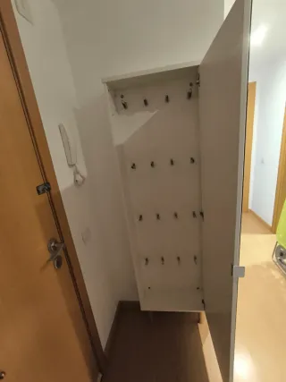 Zapatero de madera con capacidad para varios pares de zapatos. Sus dimensiones son 164 cm de alto, 54 cm de ancho y 19 cm de fondo. Para 8 pares - Diseño moderno y funcional. - Acabado en blanco y madera.
