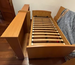 Somier de lamas de madera con ruedas y patas plegables Como nuevo. Para cama de 90 x 190 cm