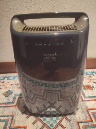 Deshumidificador DeLonghi Ariadry Multi en color gris y multicolor. - Diseño moderno y compacto. - Asa integrada para facilitar el transporte.vale también para secar la ropa.