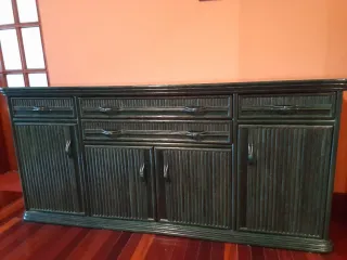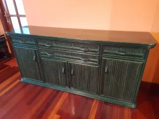 Aparador de salón verde de caña de bambú.