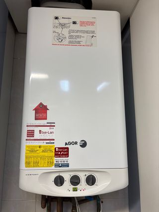 Caldera de gas Fagor modelo Comfort del año 2009. - Color blanco. - Incluye etiquetas de servicio técnico oficial Etxe-Lan. - Pantalla digital con indicadores.