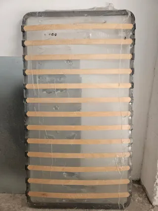 Somier de lamas de madera en buen estado, ideal para colchones de 90x190 cm. - Estructura metálica resistente. - Lamas de madera flexibles. - Diseño moderno y funcional.