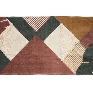 Alfombra de algodón con un diseño geométrico moderno y texturas variadas. Sus colores tierra y verdes le dan un toque natural y sofisticado. - Medidas: 140 cm de largo x 70 cm de ancho. - Composición: Algodón y tejido. Precio venta 35€. Vendo por cierre de tienda. precios espciales por lotes
