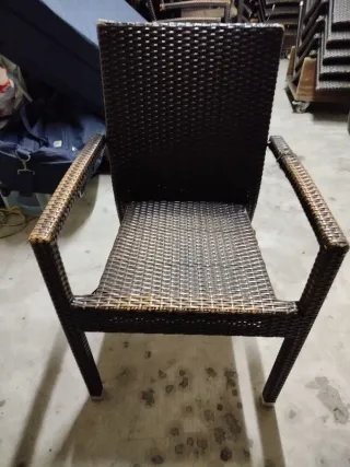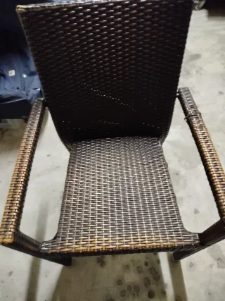 Conjunto de sillas de mimbre, perfectas para tu terraza o jardín. - Diseño tejido en tonos marrones y beige. - Materiales resistentes para exteriores.