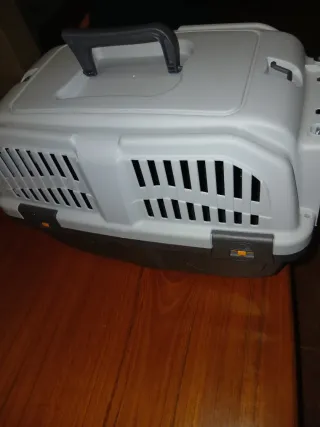 Transportín para mascotas en excelente estado, casi sin uso. - Diseño moderno y funcional. - Amplias rejillas para ventilación. - Asa superior para facilitar el transporte.