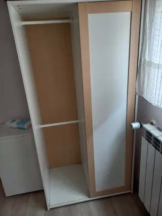 Armario de dos puertas con un diseño moderno y funcional. 50 fondox 81.2 de ancho x 152 de alto - Puertas correderas. - Doble barra para colgar ropa. - Estantes interiores.
