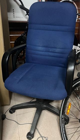 ¡DISPONIBLE, ENVÍO , PRECIO FIJO!!Usado en buen estado Sillón de oficina regulable altura , giratorio, ruedas , metálico tapizado en tejido azul Resistente , con un diseño moderno y funcional.Base giratoria con ruedas para facilitar el movimiento.Asiento acolchado para mayor comodidad. Posibilidad de entrega en domicilio , en cercanía consultar precio según distancia . Pol. La Aurora C/ Trabajo, 9 Utrera 642 070 648 Sillón de oficina con un diseño moderno y funcional. Base giratoria. -Ruedas para fácil desplazamiento, Tapizado en tela. Estructura de metal y revestimiento en plástico.