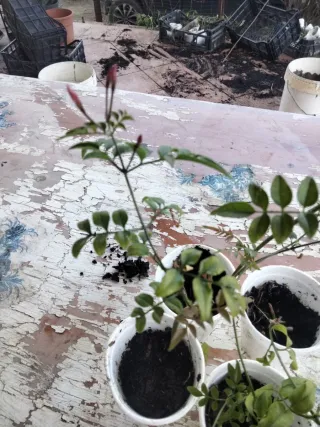Esquejes de jazmín rastrero listos para plantar. 4 plantitas completamente enraizados, alguna mostrando sus jazmines - Ideales para jardinería. - Plantas jóvenes con buen desarrollo.
