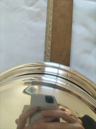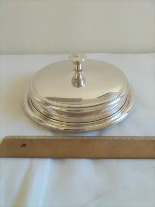 Plata plateado alpaca vajilla antigua fuente servir bandeja Es un portafritos o bandeja de servir con tapa sellado "Orbisa mtl" en las tres partes porque además se puede adaptar y ser más alto o menos, en bastante buen estado con algunos arañazos típicos de éste tipo de piezas, hechura de calidad, limpio. Medidas: 24 cm la bandeja de base, altura 5cm y 10cm hasta el pomo. Tengo en mi perfil otras fuentes bandejas candeleros y objetos para mesas especiales, ver, gracias.