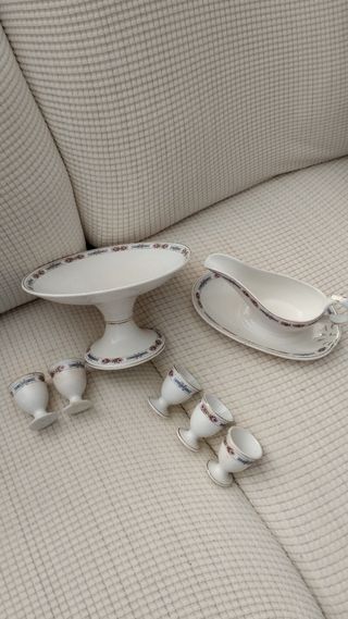 La salsera y frutero estánuy bien, las hueveras hay 5 y una con desconchado