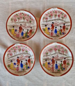 4 Platitos Japoneses Porcelana Antiguos