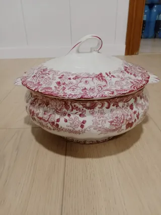 Sopera antigua de porcelana con flores