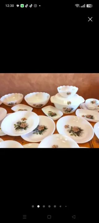 Elegante vajilla Arcopal con un delicado diseño de flor rosa. - Piezas de cerámica y porcelana. - Tonos blancos y rosados.. -5 TAZONES GRANDES DESAYUNO 🥣. -5 PLATOS DESAYUNO (25€).16 cm -1 Ensaladera/ bol grande (20€). -1 Ensaladaera/ bol mediana (20€). -1 Ensaladera/ bol más pequeña (15€) -6 platos llanos grandes.(35€) -6 platos hondos.(35€) - 6 platos postre.(35€) -3 fuentes / bandejas cuadradas (8 UNIDAD). 24€ las tres (8€ unidad) - 1 Sopera . -1 tapadera sopera ,sirve para servir (25) arcopal rosa Excelente dibujo y brillo 🔆 . No negociable, gracias 😊🍀😊
