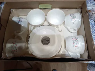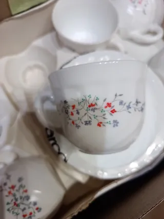 Juego de tazas Arcopal con un bonito diseño floral. Medida en las fotos - Material: Vidrio y porcelana. - Color: Blanco con detalles multicolores.