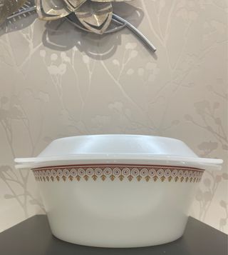 Fuente de horno Arcopal con un delicado diseño de rosas. - Modelo: Rosas - Material: Vidrio Ideal para meter en el horno y presentar en la mesa. Está nuevo no se uso. Ver fotos.
