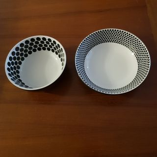 Set de dos cuencos de porcelana con un diseño de puntos negros. - Diseño de puntos negros. - Material de porcelana.
