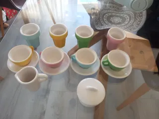 Set tazas profesionales Franquicias Especialista en atrezzo menaje retro y vintage 70’s-80’s. Hago entregas En Sevilla capital y envíos por Wallapop a 3,99€ península y Baleares. Se puede pagar por Wallapop bizum también hago trueque (cambios entre artículos del mismo precio) Siempre respondo a cualquier duda o consulta Vintage muebles espejos lámparas mesas sillas comedor diseño deco nouveau retro Pop Kitch Camp Space Age Weimer Rep. Futurista midcentury Fase Boomerang 1960 1970 1980 decoración importación alemana original único cerámica artesanal Regal Sargadelos Pontesa Castro alfarería azulejos a mano Tiffany artesanía italiano Murano coleccionismo textil patchwork taracea damasquinado toledano cristal murano acero oro18K 24k plata 925 alpaca acero inoxidable 18/10 joyas cubertería cubiertos utensilios cocina Relojes fibra vidrio metacrilato plexiglass baquelita celuloide perfecto estado vajilla porcelana Bone China Starbucks opalina Arcoroc Arcopal Luminarc Duralex Vereco Lys Harlequin Ondas marrón vidrio ámbar verde azul cristalería tazas tazones bowls ensaladeras copas platos antigüedades segunda mano almoneda elegante interiorismo boho chic moderno contemporáneo estilo nórdico inglés italiano IKEA importación oportunidad ofertas envío ventas en persona trueque