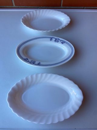 El precio más ajustado en wallapop. 11 platos llanos 12 platos hondos 11 platos postre 9 vasos 4 tazas café 2 platillos 1 ensaladera 1 bol con tapa Un total de cincuenta piezas compradas hace un año. Se puede completar fácilmente, en muchos sitios venden piezas sueltas, Carrefour, El corte inglés ... También a través de Wallapop disponibles muchas piezas. NO LO ENCONTRARÁS A UN PRECIO MAS AJUSTADO. Se vende todo junto.