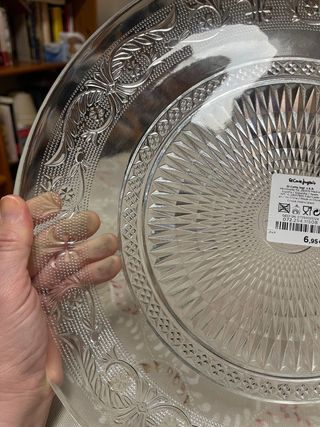Elegante bajo plato con un diseño detallado y un borde decorado. Añade un toque sofisticado a tu mesa. - Borde con motivos florales y geométricos. - Diseño grabado en relieve. - Apto para uso alimentario. Se venden 16 unidades.