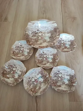 Sólo envíos Conjunto de platos con un diseño oriental. Vajilla inglesa Johnson Bros - Diseño de paisaje asiático. - Juego de 7 piezas.