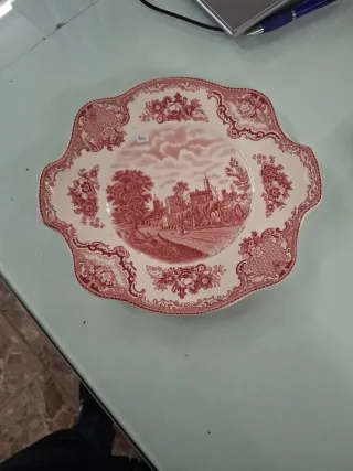 Conjunto de vajilla Johnson Bros con un bonito diseño. - Vajilla de cerámica. - Diseño floral en color rosa. - Incluye plato central ovalado de 32,5 cms x18 cms y 6 platos de 20 cms de diámetro