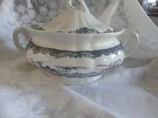 Elegante sopera de porcelana con un diseño clásico. Color negro y blanco - Motivo Vista en color negro. - Pieza decorativa y funcional. Pickman La cartuja de Sevilla